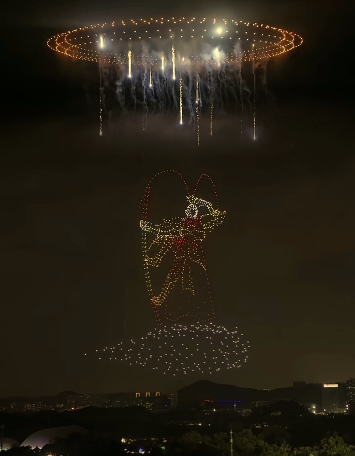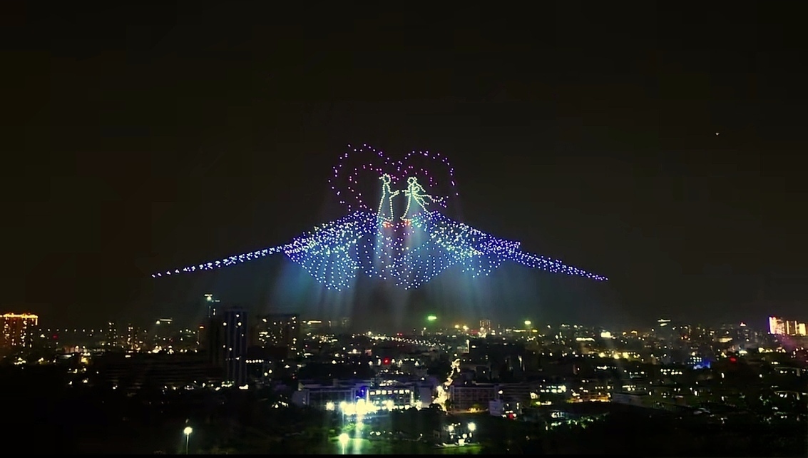 ドローンショーとは、LEDライトを搭載した数百機ものドローンを上空に放ち、