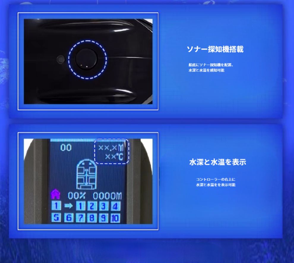 機能:GPS/北斗衛星、Ai自動帰航、魚群探知レーダー、大容量積載荷重、500m遠距離操縦、高速ダブルエンジン